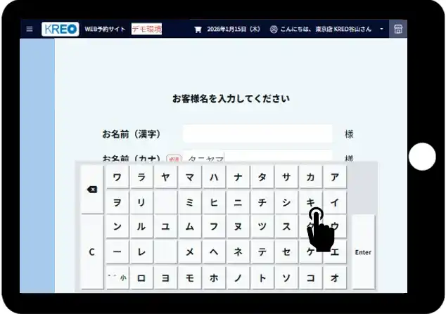タブレット対応モード:予約情報入力画面イメージ |