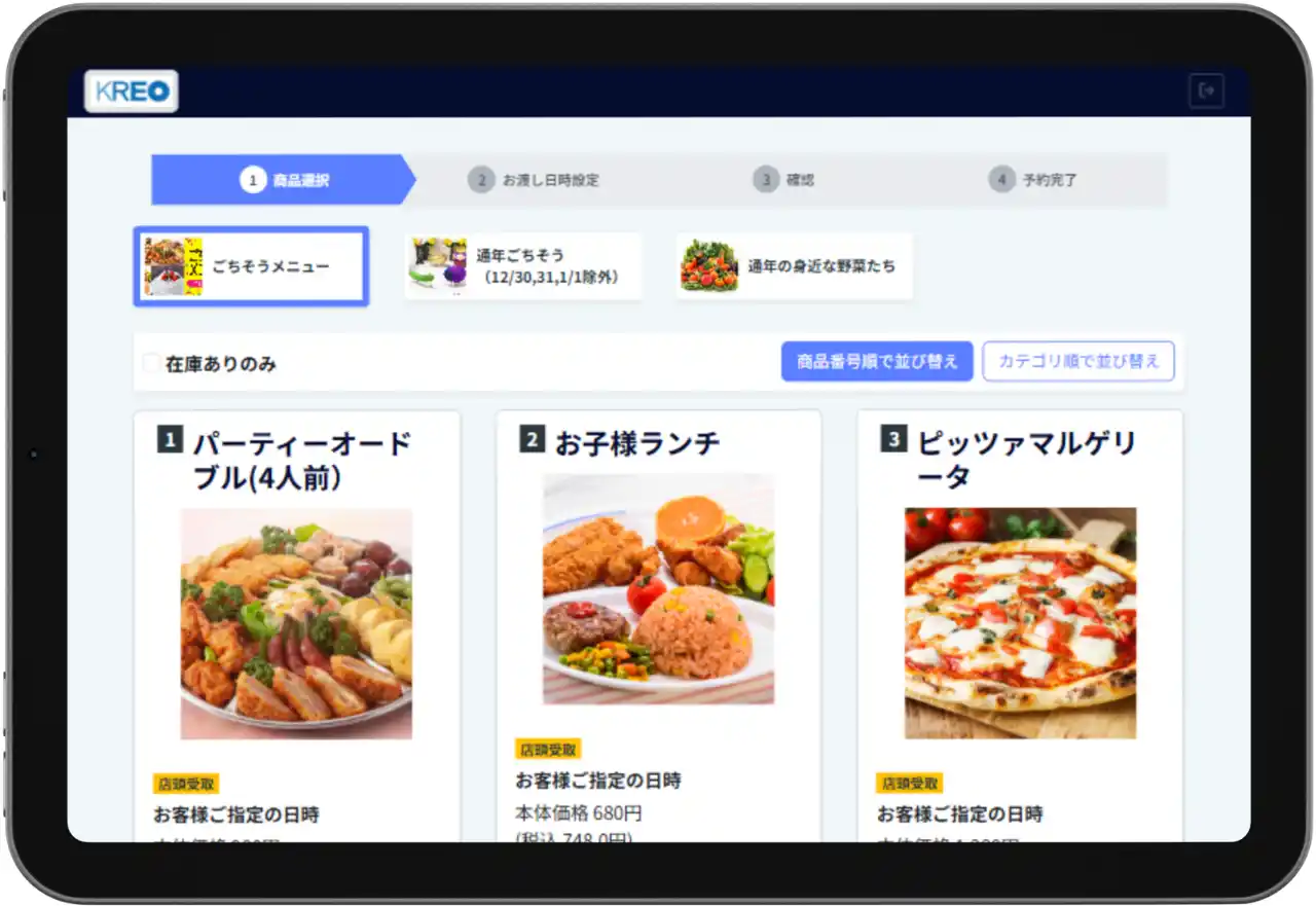 タブレット対応モード:商品選択画面イメージ |