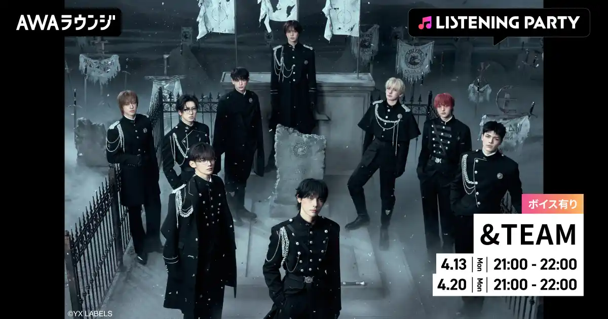 | AWA株式会社(本社:東京都港区、代表取締役CEO:冨樫晃己)が運営する、サブスクリプション型(定額制)音楽ストリーミングサービス「AWA(アワ)」は、2026年4月13日(月) 21:00~22:00と4月20日(月) 21:00~22:00の2日程に渡り、無料で誰でも参加できるオンライン空間「AWAラウンジ」で、&TEAM特集のリスニングパーティーを開催いたします。 | |||