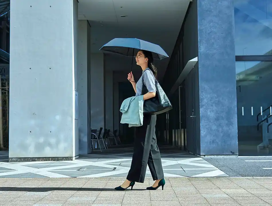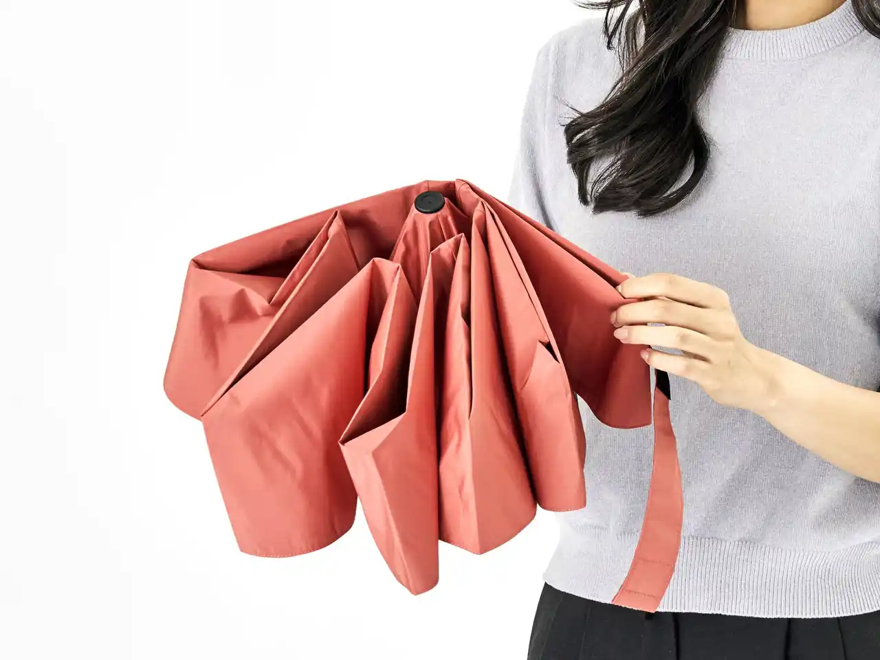 しかし、この急速な進化の中で置き去りにされてきた課題があります。「たたむ」行為そのもののストレスです。建物に入る際、濡れた生地をまとめきれず手間取る数十秒。バッグの中で整わないまま収まった傘。どれだけ服装や持ち物を整えていても、傘を閉じた後の「もたつき」だけが、その人の印象を損なうと言っても過言ではありません。 |
