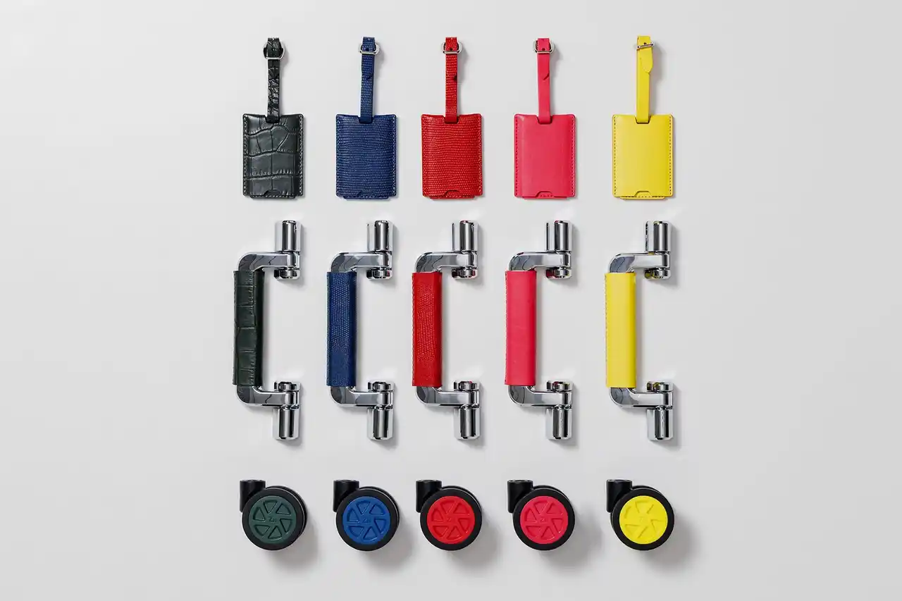 本サービスでは、象徴的なアルミニウムラゲージを対象に、初の試みであるホイールカラーの選択をはじめ、ハンドル、ネームタグの3つのカスタマイズを展開します。特にハンドルは、グリップ部分を熟練職人の手仕事による〈レザー巻き仕様〉へとアップグレードし、使うほどに手に馴染む風合いをお楽しみいただけます。 |