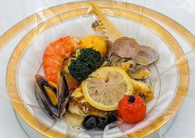 ミニコースディナーのメインは、ホテルパールシティ神戸で人気のメニュー「国産牛ロースのミラノ風カツレツ」または「魚介のアクアパッツァ」から、お好みでお選びいただけます。さらに、20品目のサラダバーをはじめ、冷製・温製料理各種とデザート類、10種類のソフトドリンクバーが楽しめるハーフバイキングもご用意し、皆様のご予約をお待ちいたしております。 |