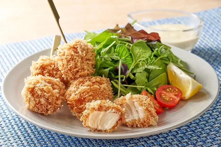 毎年好評!おかずにも、おつまみにもおすすめ 昨年もご好評いただいた「北海道産ホタテ串」が、今年も登場いたします。噛むほどに旨みが広がる北海道産のホタテに、まい泉自慢のオリジナルパン粉をまとわせ、カラッと揚げました。串刺しで食べやすく、おかずの一品やおつまみにもおすすめです。まい泉オリジナルのタルタルソースをたっぷりつけてお召し上がりください。 |