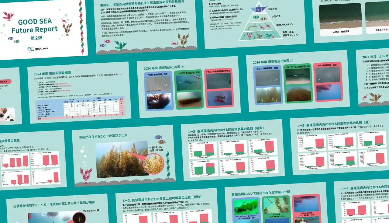 一般社団法人グッドシー(代表理事:新井章吾、本社:東京都練馬区、以下グッドシー)は、海藻養殖が海の生態系に与える影響を検証した「GOOD SEA Future Report 第2弾」を公開しました。 |