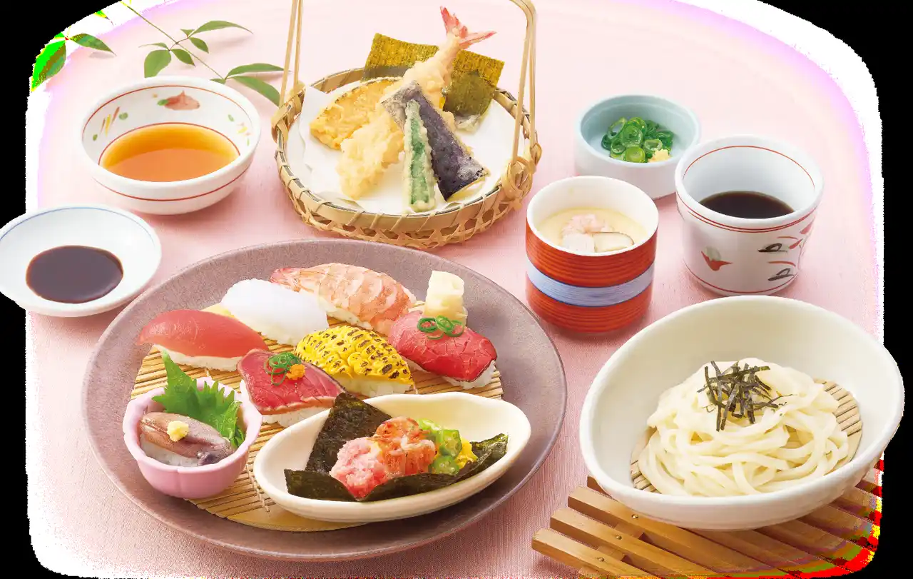 鰹のたたき・桜海老・ほたるいかなど季節の特選ネタを味わえる寿司和膳。 |