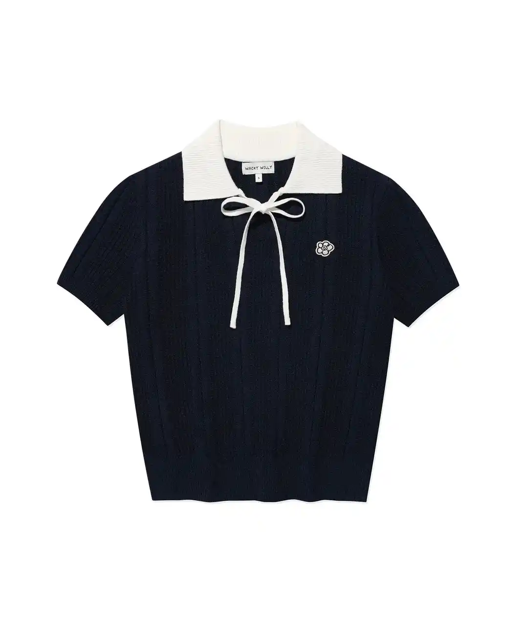 WOMEN'S RIBBON COLLAR SHORT SLEEVE KNIT |