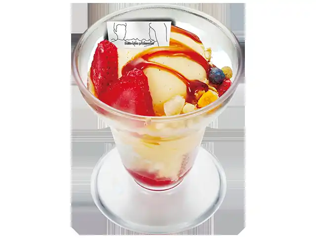 | 「Belle id e e pÂtisserie! (ベルイデパティスリー!)」はフランス語で「美しきアイデア」を意味し、その名の通り理想を追求した世界を代表するパティシエ・駒居崇宏シェフが手掛けるスイーツブランドです。今回の目玉商品「プレミアムいちごカスタードプリンパフェ」は、世界を代表するパティシエ・駒居シェフ監修のカスタードアイス(バニラビーンズ入り)とかっぱ寿司自慢の店内仕込みのプレミアムプリンを贅沢に重ね、カラメルソース・パッションソース・ストロベリーソースで華やかに仕上げた一品です。いちごとグラノーラの食感が重なり、口の中で豊かな味わいが広がります。 | |||||||||||||