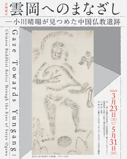 雲岡石窟は北魏時代に造営された壮大な仏教遺跡で、明治以降に再評価され多くの日本人知識人が訪れた。本展では、1939・1941年に雲岡を撮影・拓本・スケッチした仏像写真家・小川晴暘の資料を通して、彼のまなざしと足跡を紹介する。 |