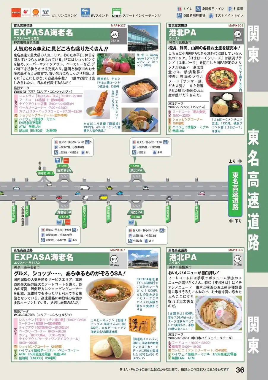 今年度版の特集ページでは高速道路から道の駅に一時退出しても追加料金のない、全国29カ所の道の駅を紹介。しかも思わず寄り道観光したくなる道の駅を厳選して5カ所紹介。各SA・PAの写真サイズも大きくなって、各エリアの魅力がより伝わりやすくなっている。 |