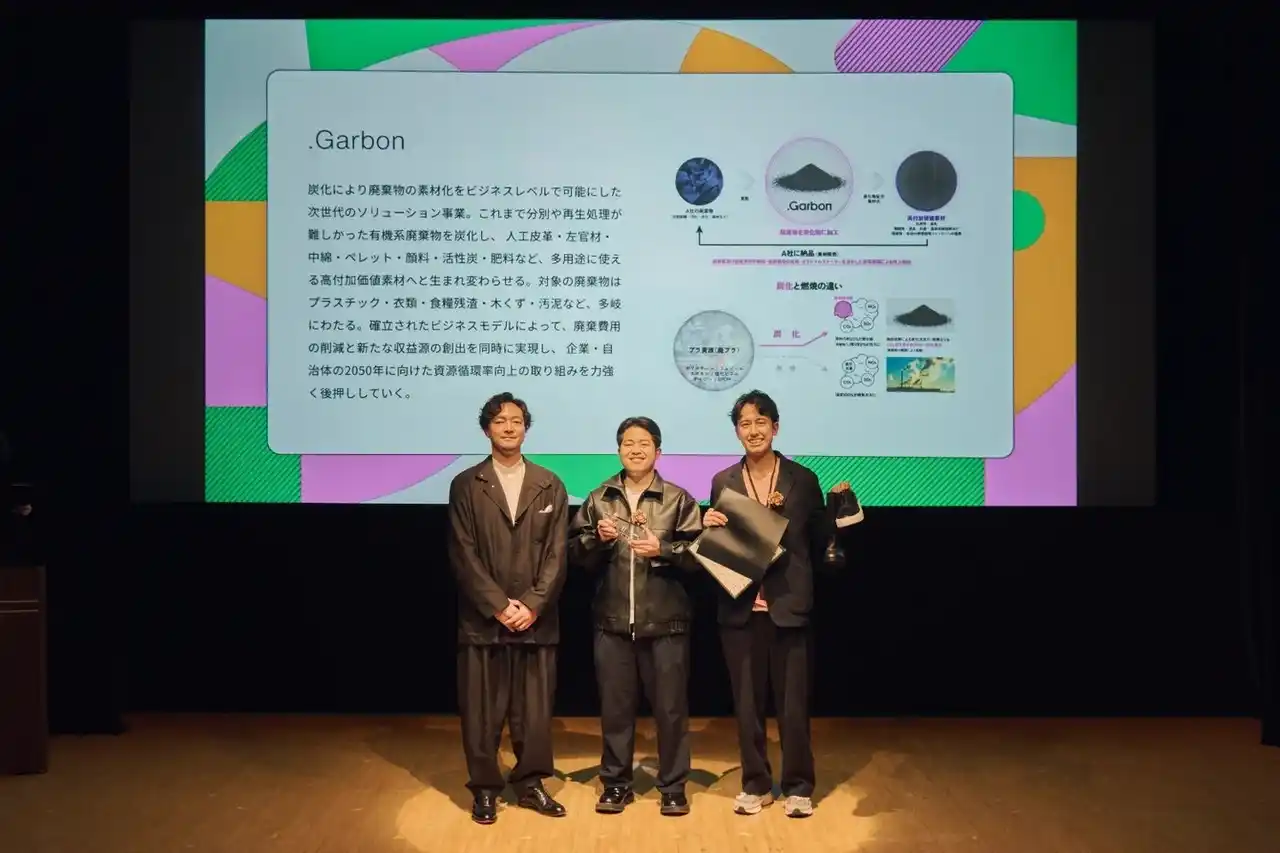 | .Garbonは、廃棄物を焼却ではなく炭化し、残った炭を人工皮革や建材、顔料などに配合して高付加価値素材を製造しています。2025年には「DESIGNART TOKYO 2025」のメイン会場内装に採用されるなど、意匠性と環境機能の両立で注目を集めてきましたが、今回の受賞により、技術的な知財価値の高さも改めて証明される形となりました。 | |||