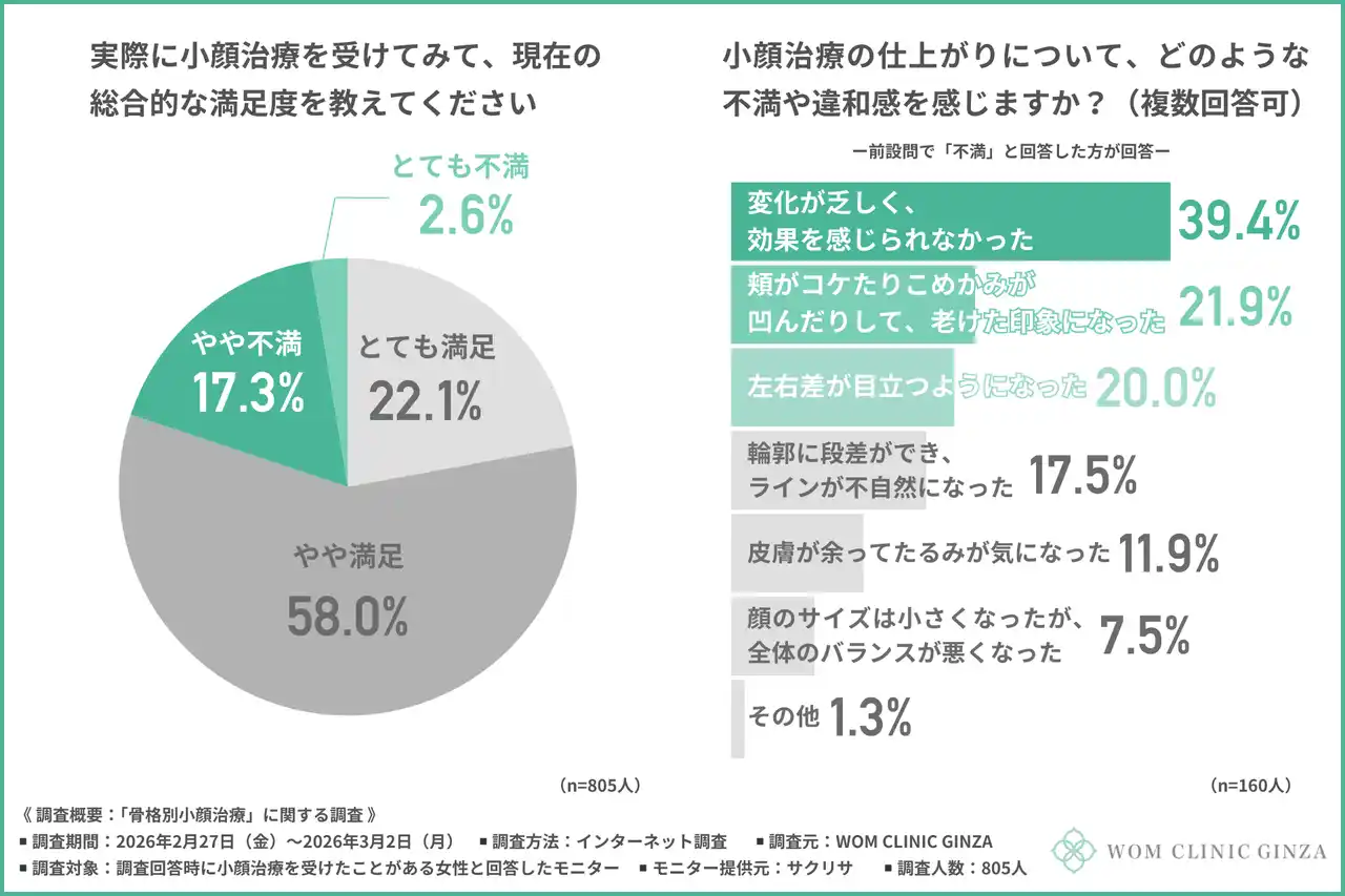 WOM CLINIC GINZA(所在地:東京都中央区、理事長:深堀 純也)は、小顔治療を受けたことがある女性を対象に、「骨格別小顔治療」に関する調査を行いました。