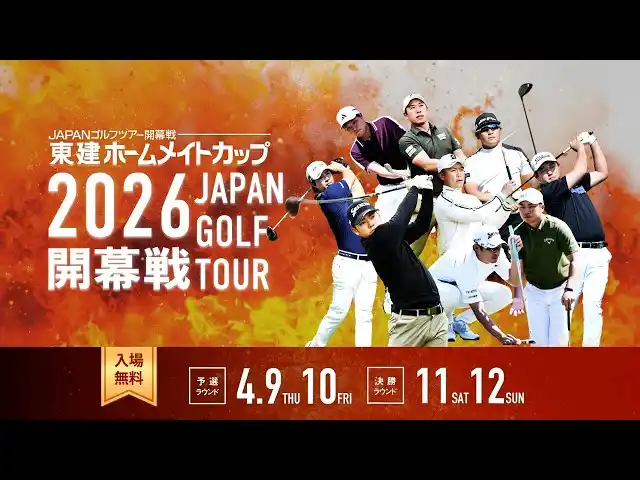 2026年4月9日(木)11日(土)12日(日)※、東建多度カントリークラブ・名古屋にて開催した国内男子ツアー開幕戦「東建ホームメイトカップ」に、多くの皆様にご来場・ご声援をいただき、誠にありがとうございました。大会は石坂友宏選手が通算9アンダーで優勝を飾り、熱戦の幕を閉じました。 (※4月10日は、悪天候のため競技中止) |