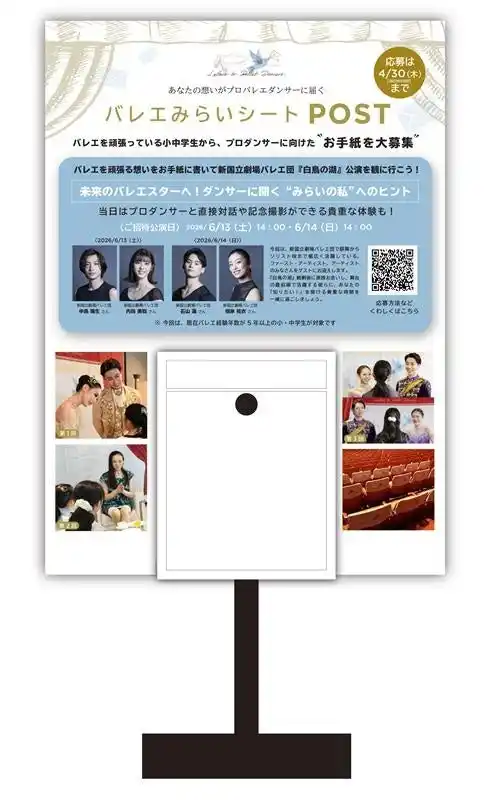 本イベント参加のための「今、バレエで頑張っていること」「ダンサーに会って聞いてみたいこと」を綴った手紙を4月30日(木)まで募集します。 |