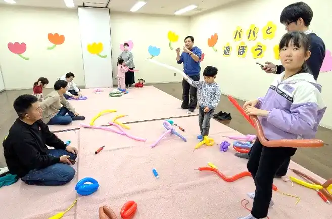 遊び・工作・絵本・実験など、父親と子どもが一緒に楽しめる体験型プログラムを実施。体験を通して、父親同士のつながりづくりも促します。 |