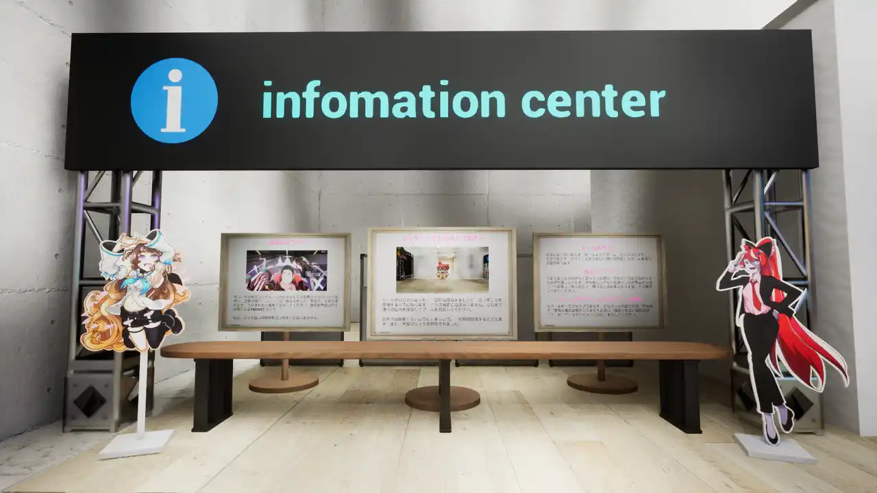 本作の舞台となる展示会場は、ホロライブプロダクションの開催する「EXPO」をモチーフに作られており、会場内には所属タレント90名以上のファンアートがオブジェクトとして数多く展示されています。 |