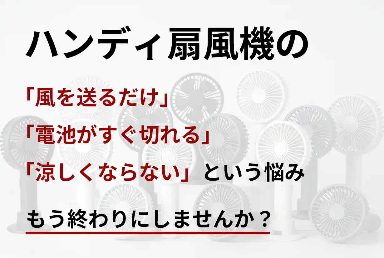 従来のハンディファンに搭載されているリチウムイオン電池は、液体電解質を使用しているため、高温環境下での発火リスクや、経年劣化によるバッテリー持続時間の低下が課題でした。 |