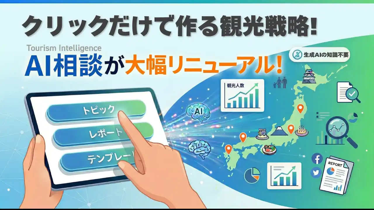 株式会社オープントーン(本社:東京都千代田区)は、観光戦略・分析ツールTourism Intelligence(ツーリズムインテリジェンス)において、AI相談をより簡単な操作でご利用いただけるように大幅にリニューアルいたしました。 |