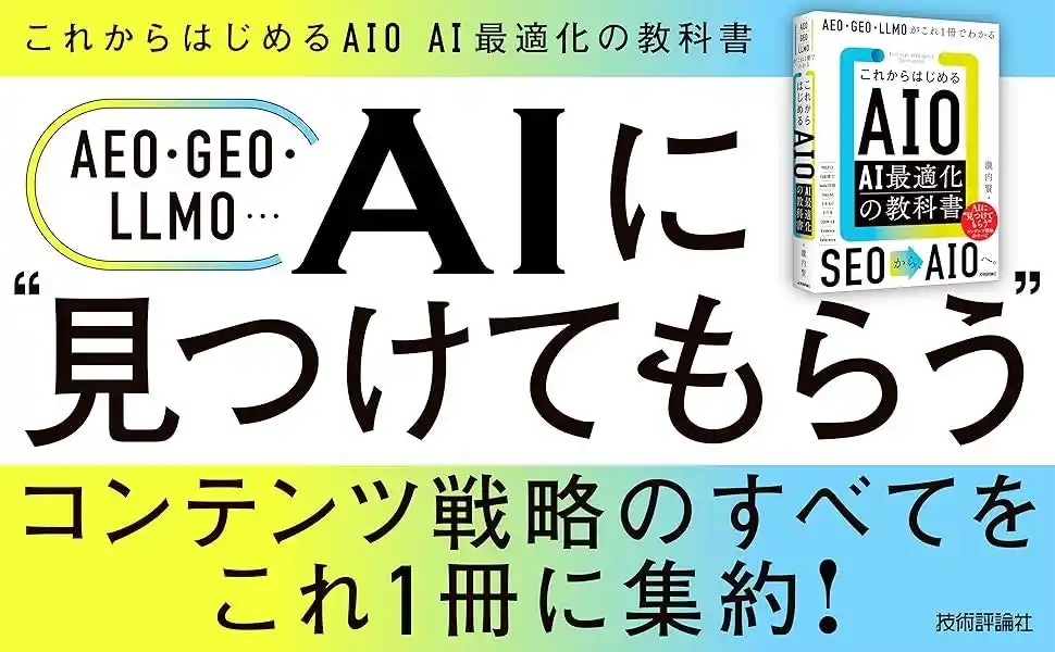 | 2026年4月24日(金)、新刊『これからはじめるAIO AI最適化の教科書 AEO・GEO・LLMOがこれ1冊でわかる(技術評論社)』が発売します。著者は、瀧内 賢(たきうち さとし)で(株)セブンアイズ 代表取締役。 | |||