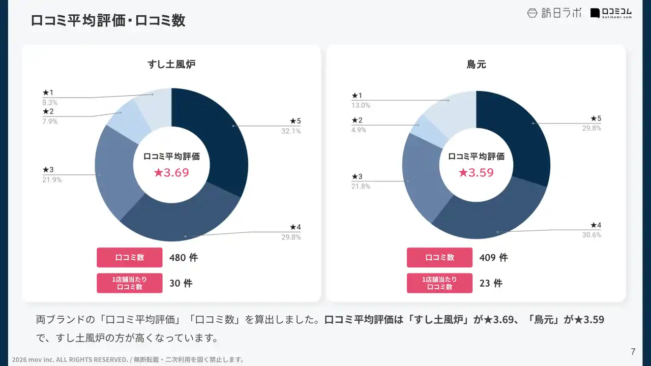 「すし土風炉」「鳥元」の「口コミ平均評価」と「口コミ数」を算出しました。 |