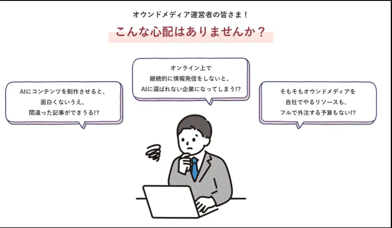 オウンドメディアを自社でやろうにも、リソースや外注予算がない。それならばとAIにコンテンツを制作させると、面白くなかったり、誤った情報を書いてしまったり――。こうしたハードルの高さに悩んでいる方は少なくないのではないでしょうか。 |