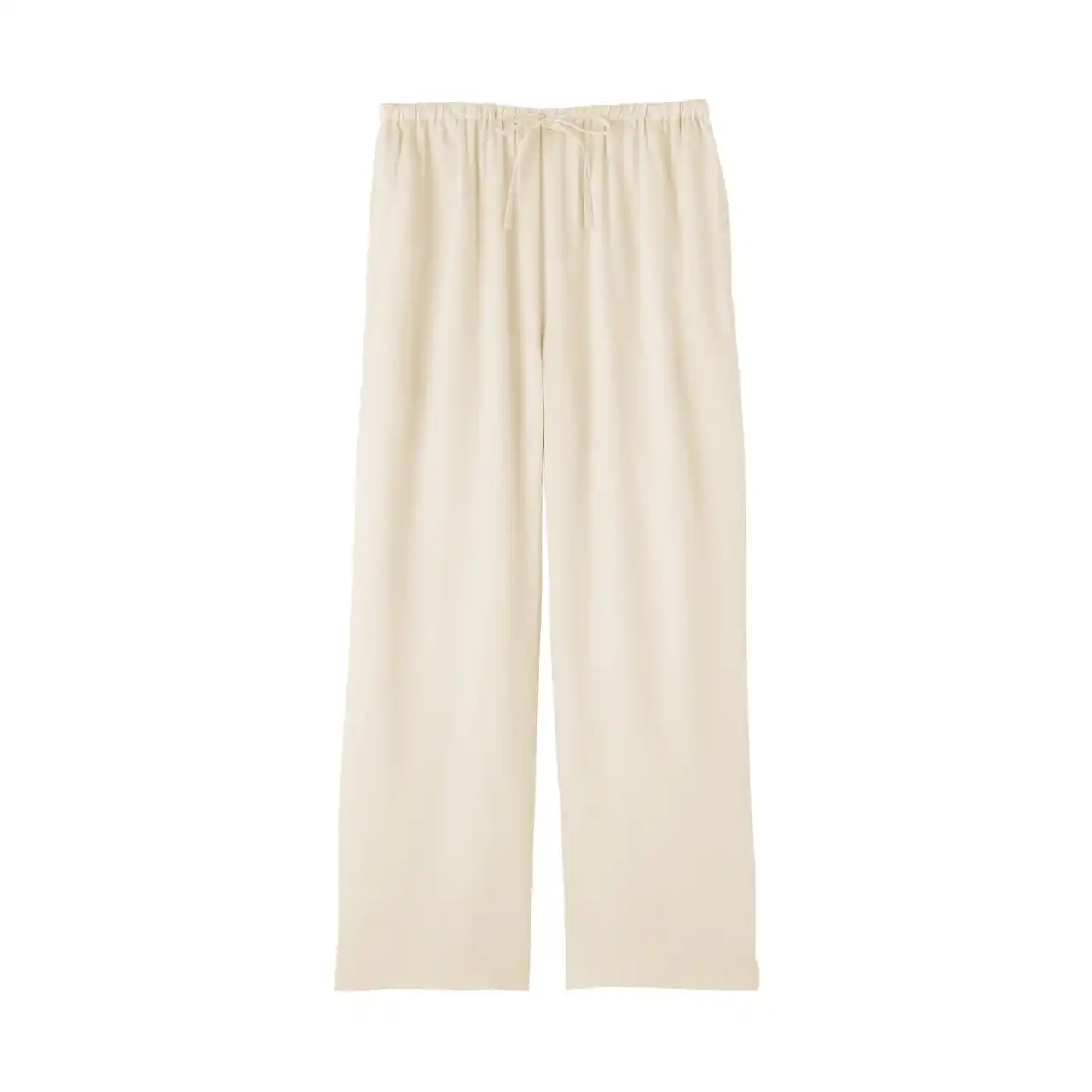 ストレートシルエットで、両脇にポケットを備えました。華奢なウエストゴムを採用し、リラックス感がありながらも上品な印象に仕上げています。単品のトップスと合わせて、ルームウェアとしても着用できます。 |
