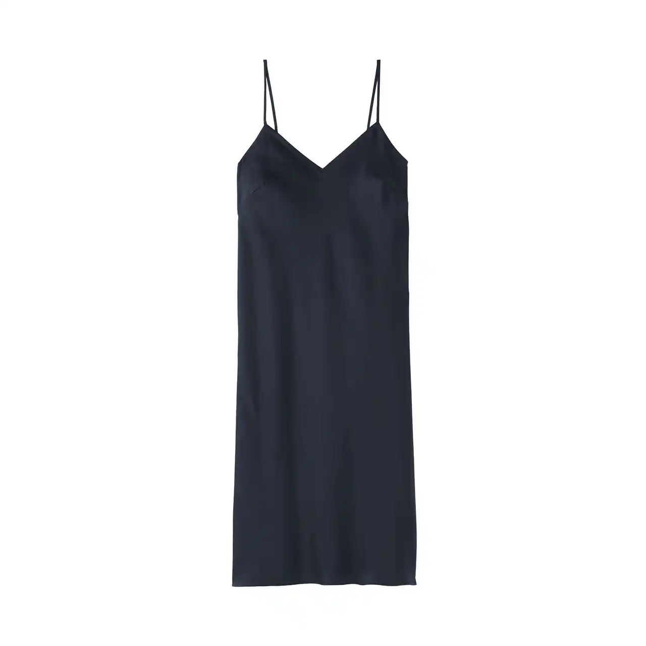 インナーウェアとしてはもちろん、ホームウェアとしてもおすすめです。肩のアジャスターでストラップの長さを調節できます。 サテン素材のため、アウターの滑りが良く、ワンピースなどの下に着ても、もたつきにくいのも特長です。 |