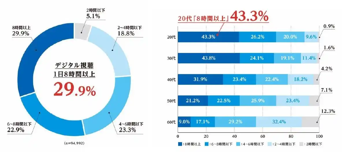 ・ 20~30代は4割以上が8時間超の長時間視聴