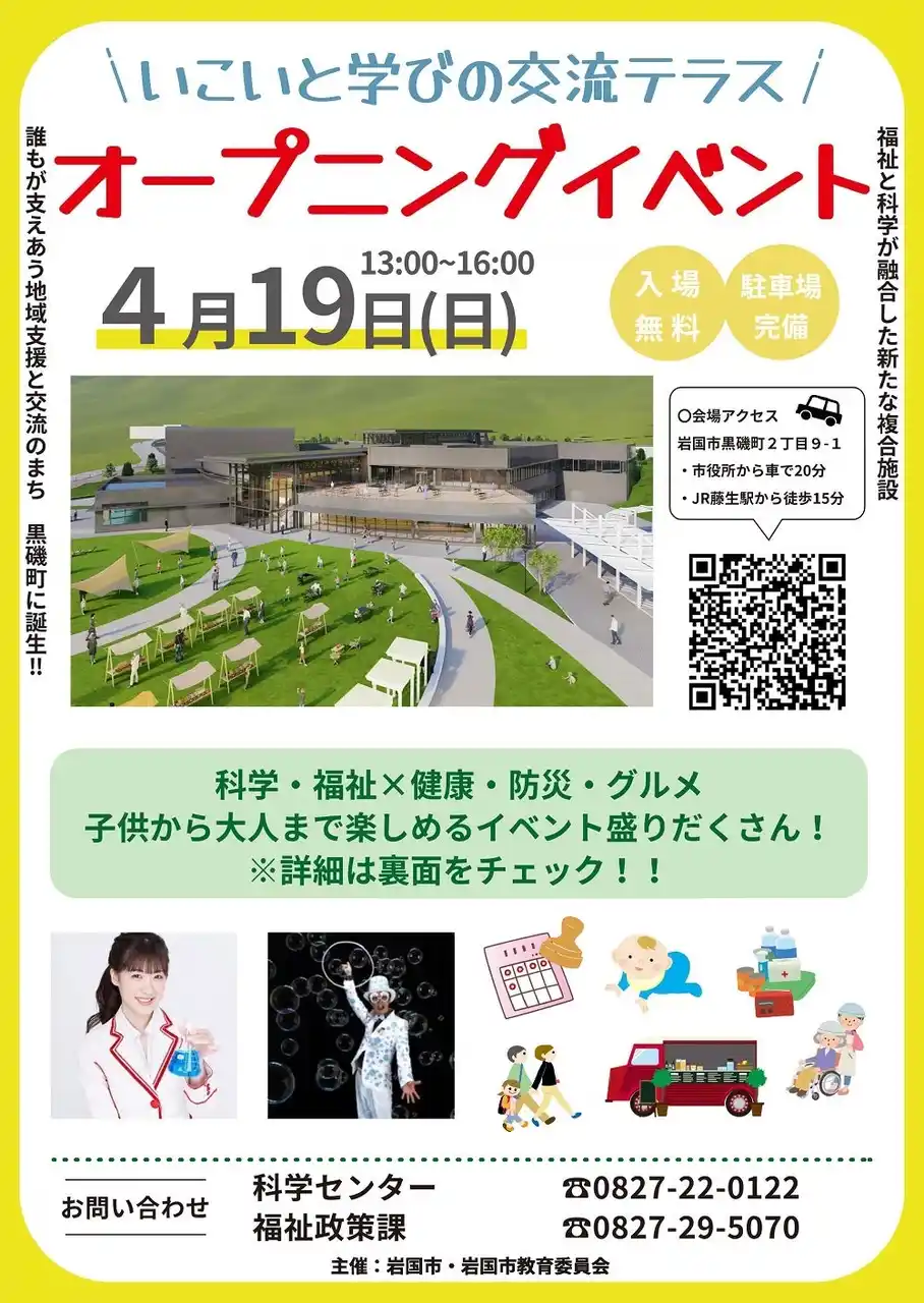 | 山口県岩国市は、黒磯地区の岩国医療センター跡地において整備を進めてきた複合施設「いこいと学びの交流テラス」にて、2026年4月19日(日)13時からオープニングイベントを開催し、2026年4月21日(火)から施設の利用を開始いたします。 | |||||||||||||||