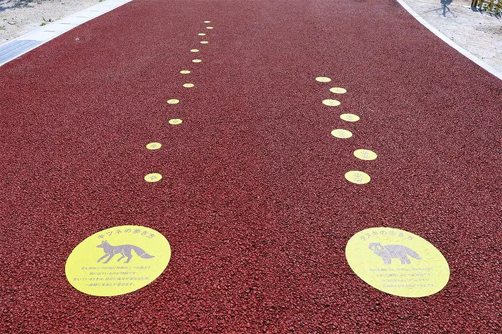 | 周辺歩道にも、様々な動物の歩き方について学べる「動物の足跡を辿ろう」や太陽系の惑星を巡る「太陽系ウォーキング」といった屋外展示を設置することで、歩きながら楽しく学べる仕掛けもあります。 | |||||||||||||||