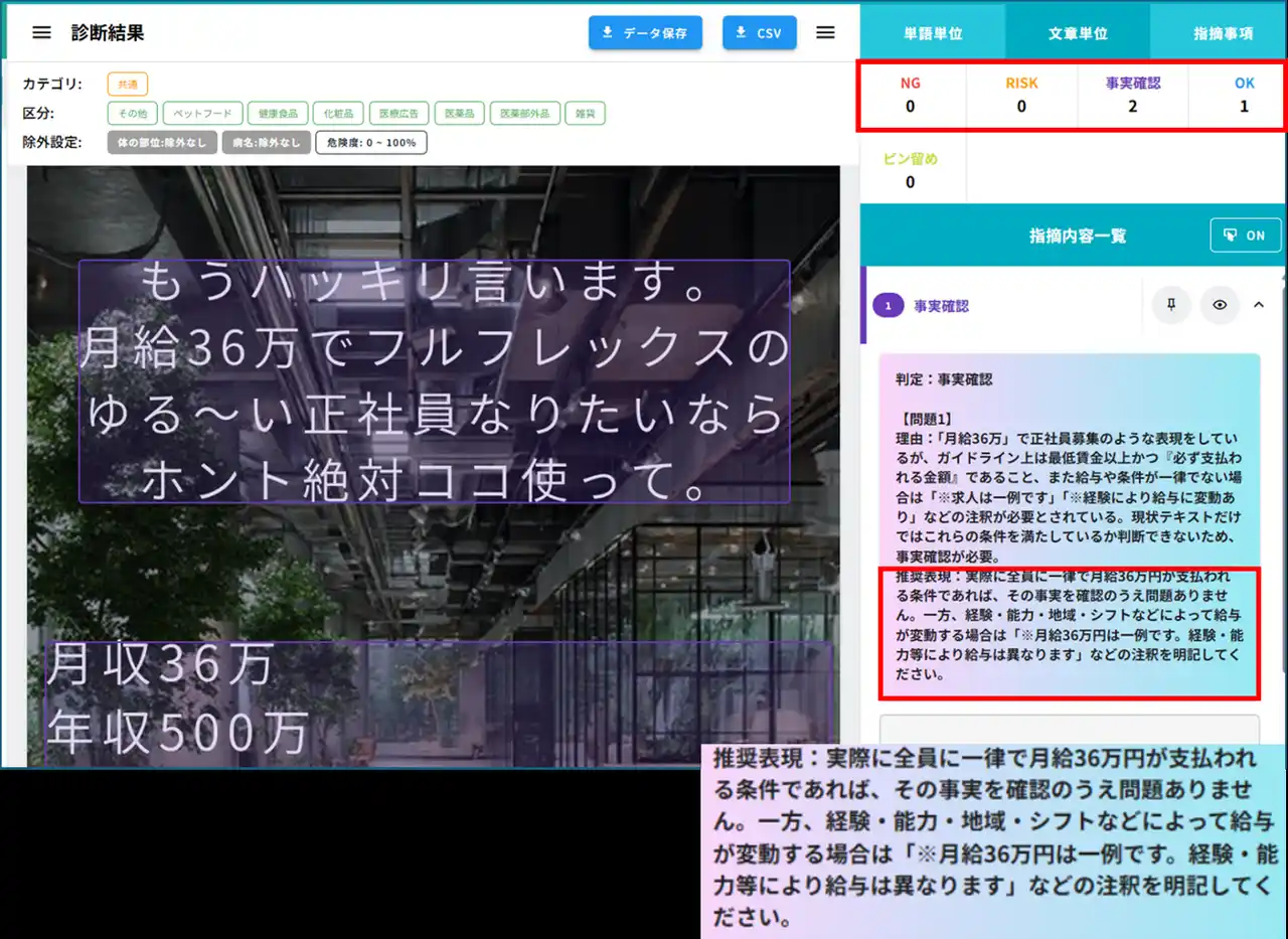 ※NG表現の指摘だけでなく、推奨表現の提示にも対応 |