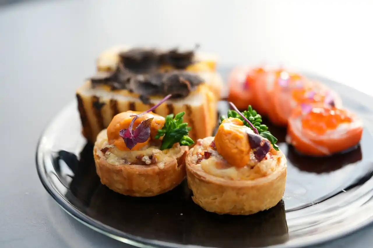 メニューは、レストランならではの上質なセイボリーを主軸に、繊細なスイーツをバランスよく取り揃えたティースタンドでご提供いたします。本日のスープやトリュフフライ、エッグトリュフサンドイッチ、クラブケーキスライダーといった贅沢なお食事としての満足度が高いラインナップに加え、ストロベリーローズケーキやカフェショコラムースなどの華やかなデザートが並びます。 |