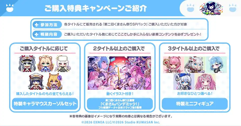・権利表記:(C)︎2021 EXNOA LLC/(C)2021 Studio KUMASAN Inc. (C)︎2026 EXNOA LLC/(C)2026 Studio KUMASAN Inc. |