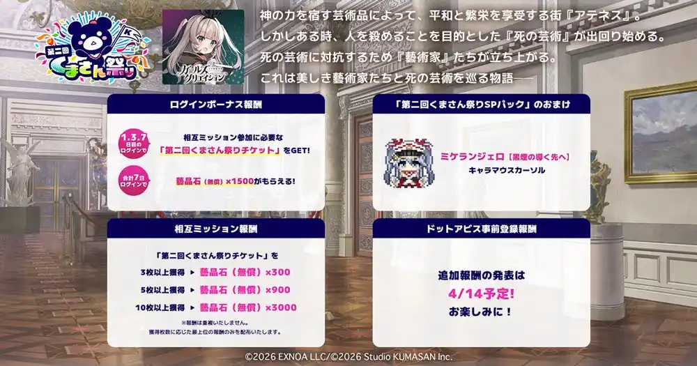 ・権利表記:(C)︎2023 EXNOA LLC/(C)2023 Studio KUMASAN Inc. (C)︎2026 EXNOA LLC/(C)2026 Studio KUMASAN Inc. |