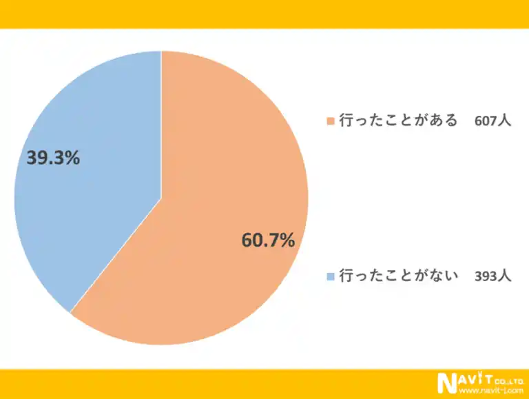 | 「潮干狩りに行ったことはあるかについてのアンケートでは、「行ったことがある」と回答された人は60.7%、「行ったことがない」と回答された人は39.3%という結果になりました。行ったことがある人の方が、かなり多いようです。 | |||