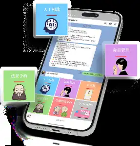 『AI副住職くん』は、檀家・参拝者がLINEで友だち追加するだけで利用できる寺院向け統合プラットフォームです。難しいアプリのインストールも、新しいIDの発行も不要。ご年配の檀家様でも、普段使いのLINEからそのままご利用いただけます。 |