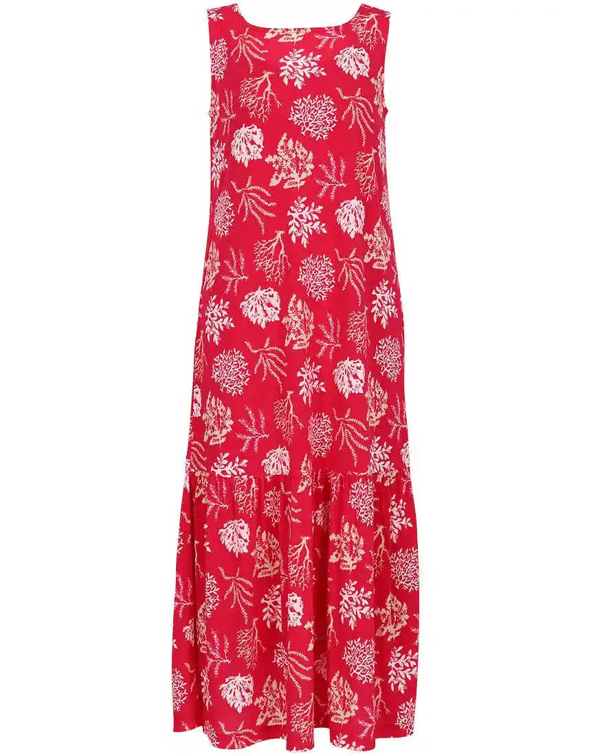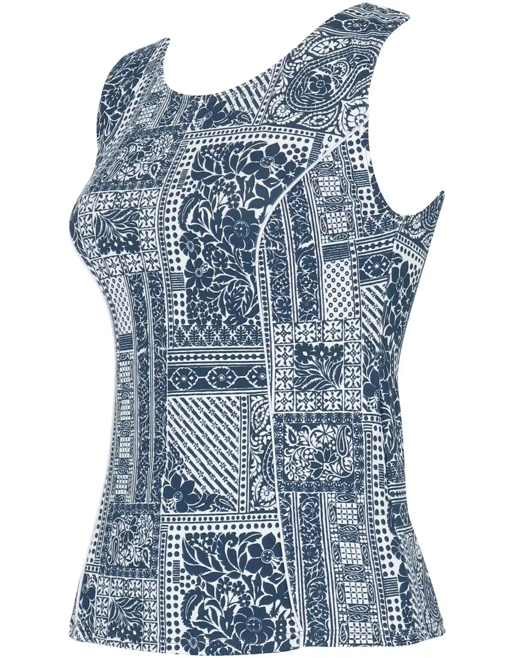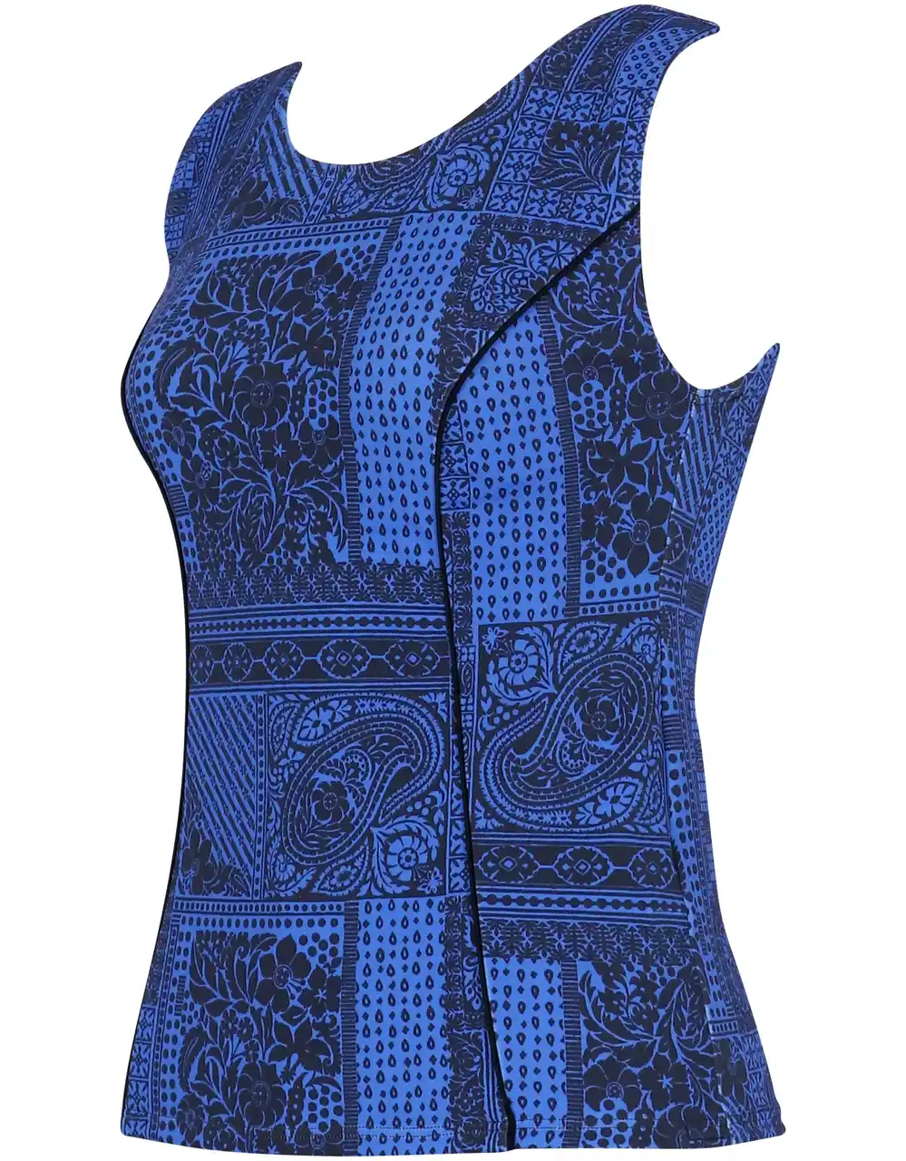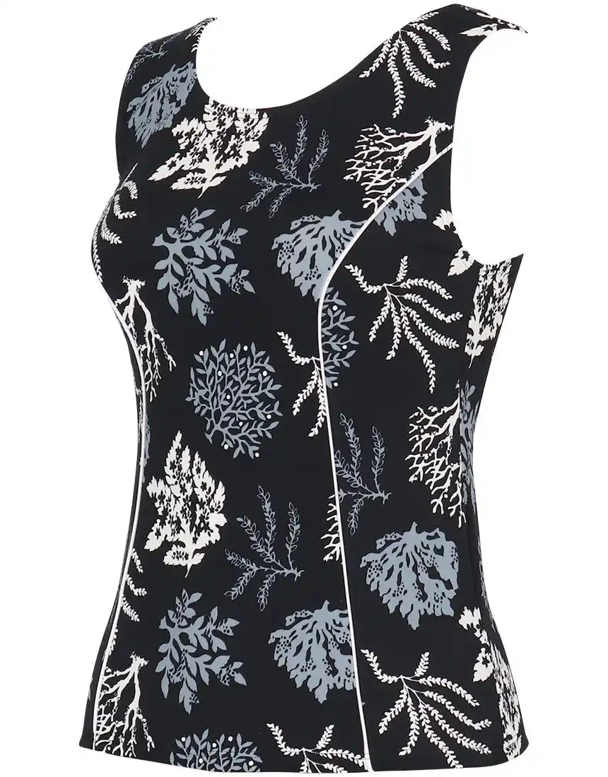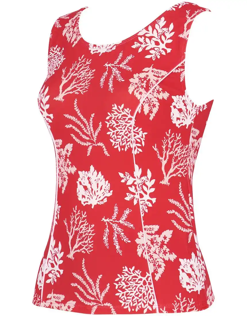 やや太めの肩ひもやストレートな袖ぐりのカッティングにより、気になるはみ肉が目立ちにくく、アウターライクに着用できるデザインに。繊細なサンゴモチーフを組み合わせた夏らしい柄を採用し、機能性と華やかさを兼ね備えた一枚です。 |