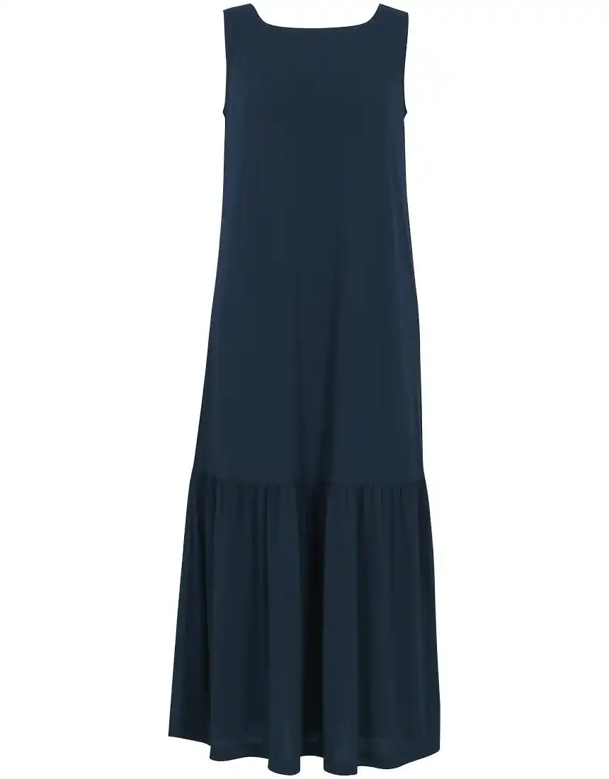 落ち感のある素材が縦のラインを引き立て、すっきりとしたシルエットでスタイルを美しく演出。デコルテを上品に見せるネックラインのカッティングに加え、ひざ下から裾にかけたほどよいボリュームのティアード切り替えやギャザーがデザインのアクセントになっています。 |
