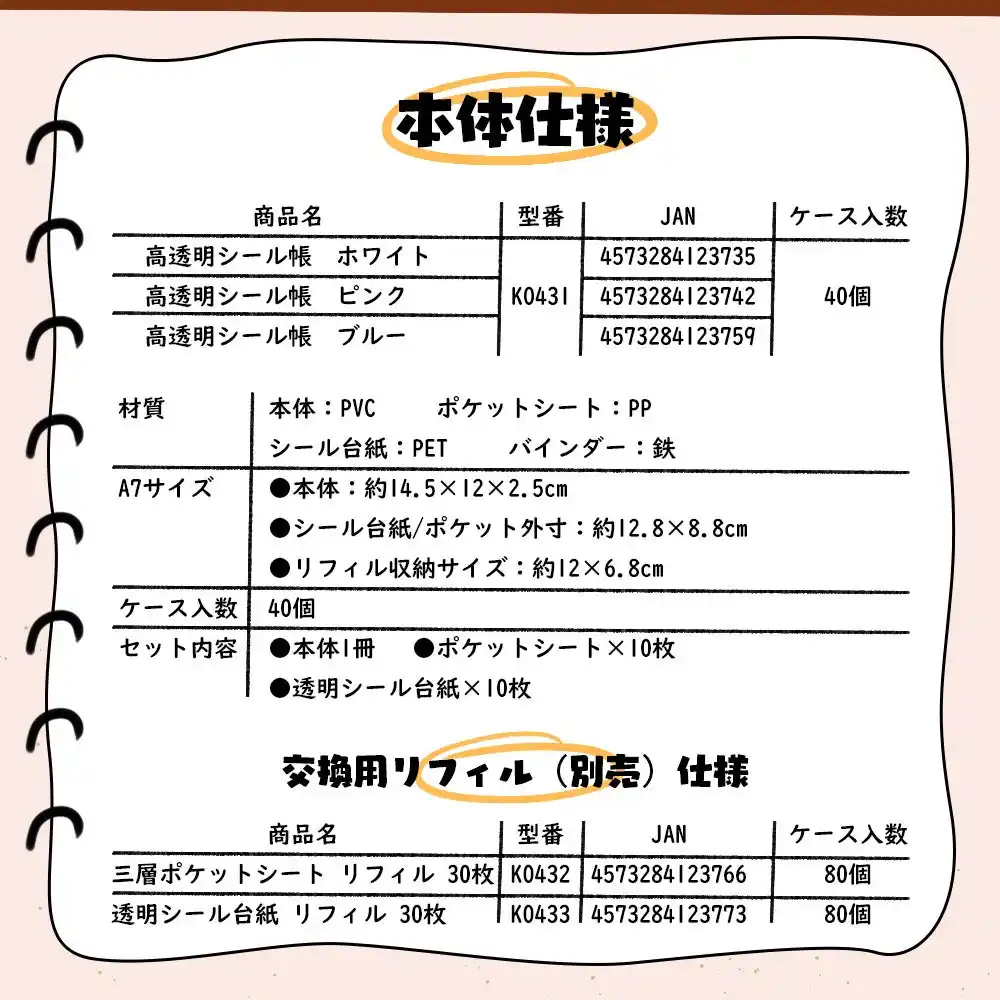 | 別売りでポケットシートタイプ、シール台紙タイプの2種類のリフィルもご用意しています! | ||||||||||||||