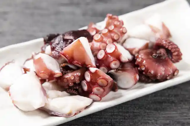 「揚げたこ焼き」に使用しているたこは、大きめにカット。熱々の生地と絡み合い、食べ応えも抜群です。 |