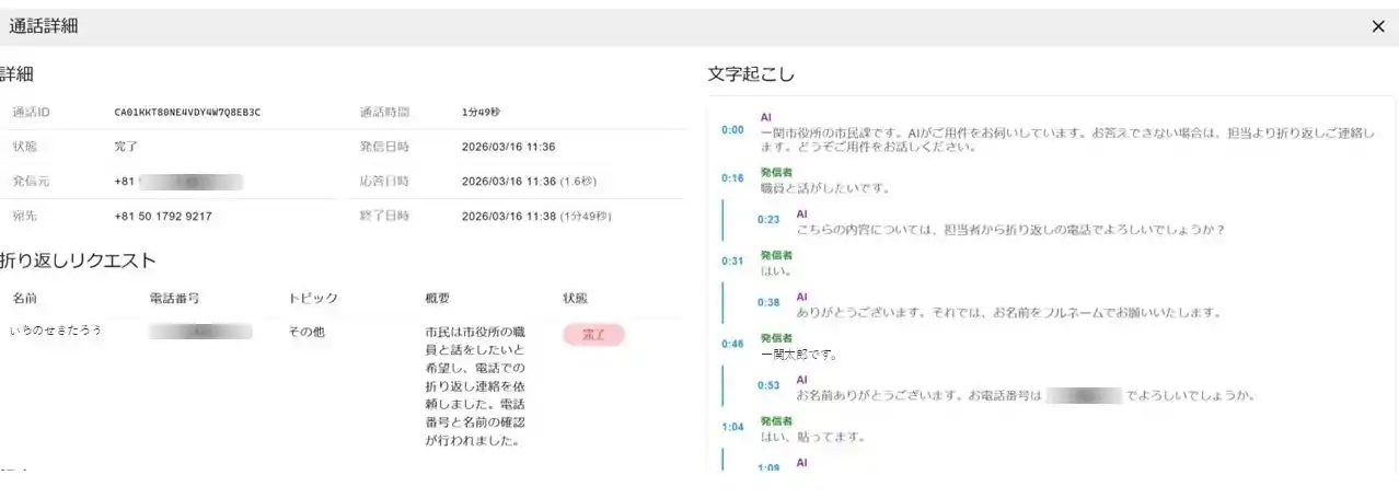 | 日本初となる生成AI電話応答サービスを市民向けに開始 |
