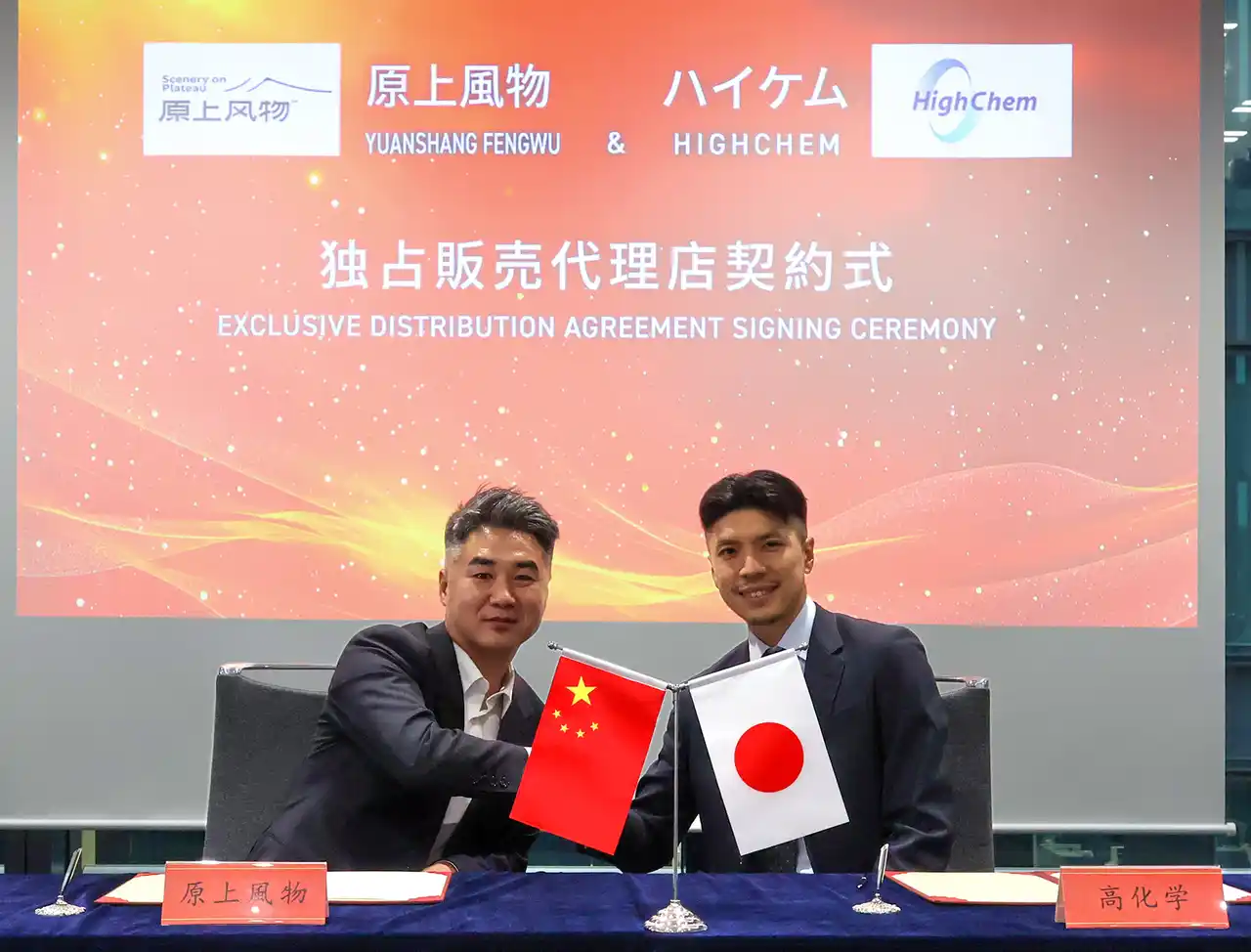 (左:上海原上風物食品科技有限公司 CEO 孫 毅氏、右:ハイケム株式会社 代表取締役社長 高 裕一) |