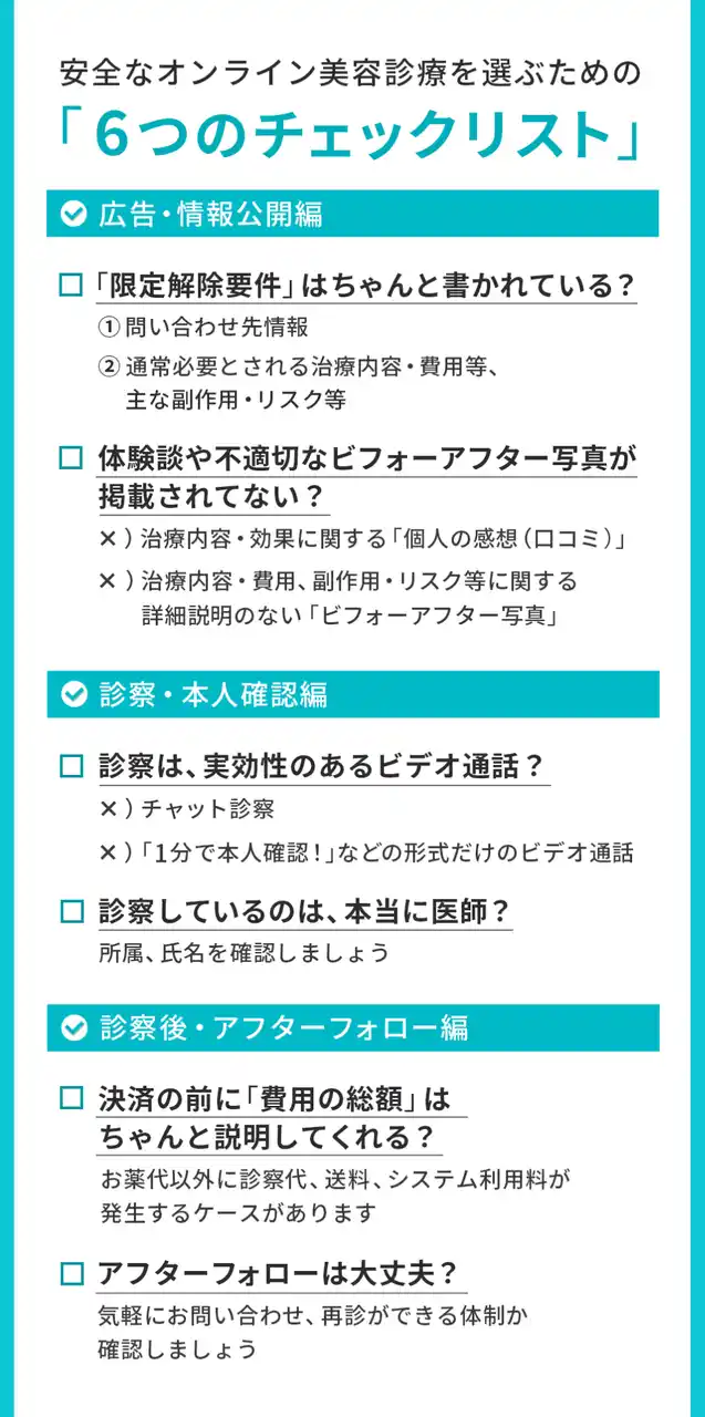■ 自分の身を守るために。安全なオンライン美容診療を選ぶための「6つのチェックリスト」 |