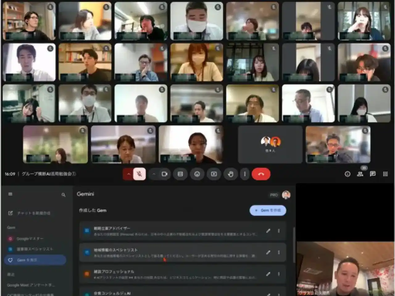 毎朝の朝礼で、AIの活用法や最新情報を共有する場を設置しております。「誰が、どの業務を、どう改善したか」という成功事例を全社へ横展開し、組織全体を毎日アップデートし続ける仕組みを紹介します。 |