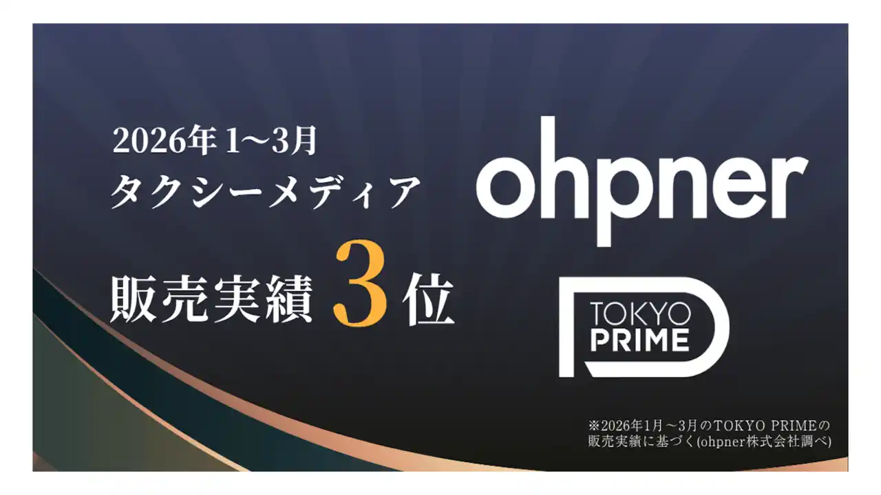 ohpner株式会社(東京都渋谷区、代表取締役:土井 健)は、株式会社IRIS(本社:東京都港区、代表取締役:眞井 卓弥・戸田 鉄平)が運営する日本最大(※1)のタクシーメディア「TOKYO PRIME」の2026年1月~3月の販売期間において、1年半足らずで広告枠の取扱高3位となりました。 |