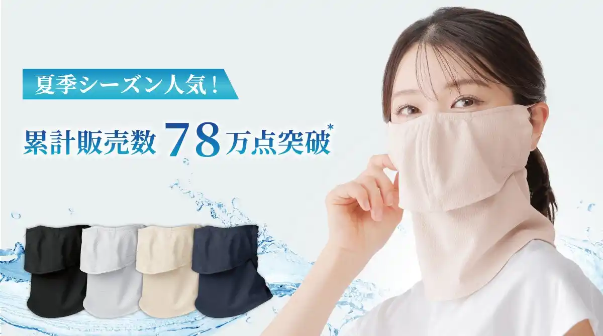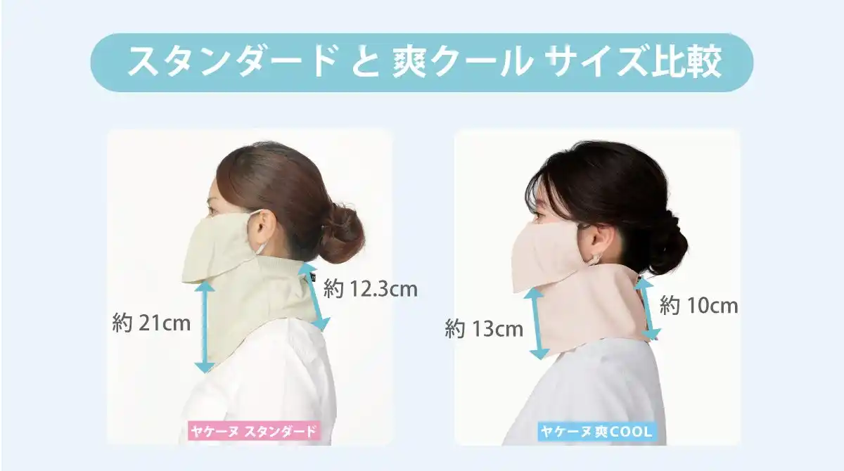 | 「ヤケーヌ爽クール」は、クーリング素材を採用し、水で濡らしたり、着用時の汗が蒸発する際の気化熱により、ひんやりとした涼感を得られるのが特長です。日差しが強まり始める春の行楽シーズンから真夏の屋外活動まで、紫外線対策と同時に暑さ対策も求められる中、1枚で両方をサポートするUVカットフェイスカバーとして需要が拡大しています。 | ||||||||||