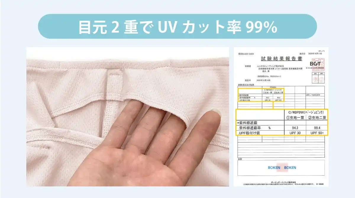 | UVカット率:ベージュピンク94.3%(UPF 30) | ||||||||||