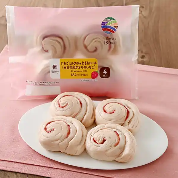 三重県産あおさ海苔佃煮」おむすびを発売。醤油、三温糖などでシンプルに味付けし、磯の香りが感じられる仕立てです。パンでは三重県産「かおりのいちご」を使用した「いちごミルクのふわもちロール」は、ふんわり・もっちりとした食感に仕上げました。デザートの「三重県産伊勢茶のダブルシュー」は、香り高い三重県産伊勢茶の味わいを贅沢に楽しめるご褒美スイーツとし、通常より重量を約1.3倍に増やした(※)、ずっしりと満足感のある仕様に仕上げました。 |