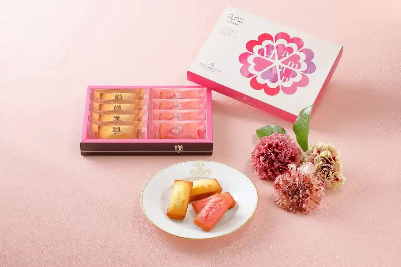 【内容】フィナンシェ3個、いちごフィナンシェ3個、ラング・ド・シャ<プレーン・母の日プリント付き1.>5個、ラング・ド・シャ<プレーン・母の日プリント付き2.>5個 |