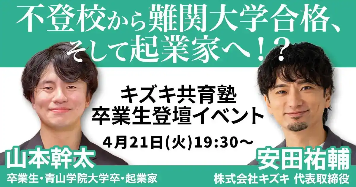 本イベントは、4月14日(火)の「山本幹太さんが登場するキズキ共育塾のYouTube動画」の公開を記念した特別対談ライブです(動画リンクは後掲します)。 |