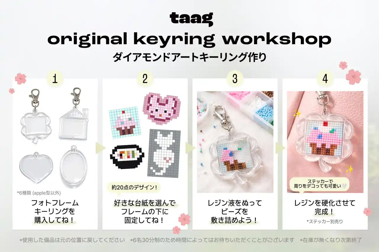 フォトフレームキーリングを購入したお客様にダイアモンドアートで作るオリジナルキーリング作りが体験できるブースを設置!カスタムという要素にさらにオリジナル要素を加えたPOPUP限定のイベントです! |